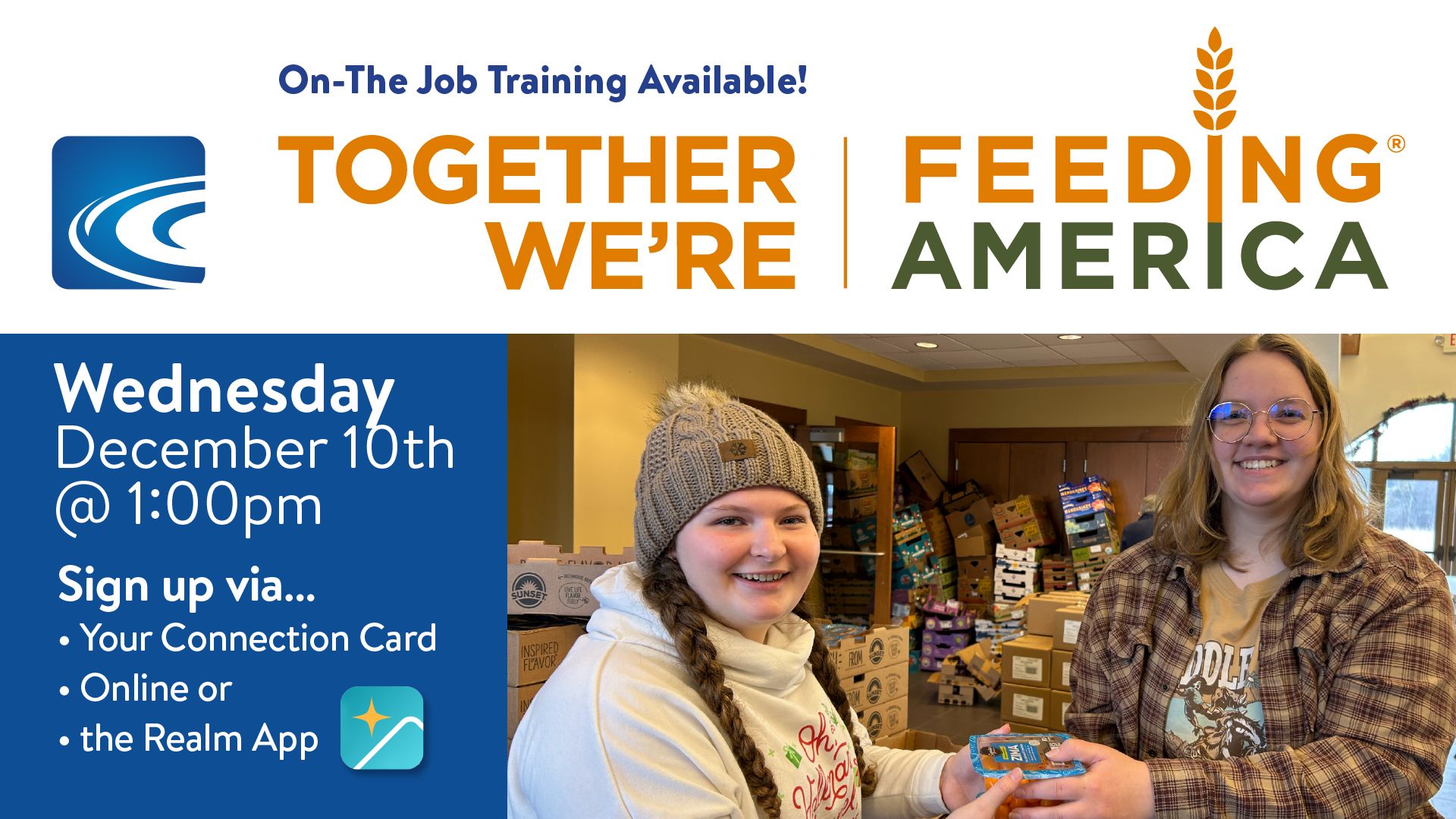 Still Waters Church has an amazing opportunity to team up with Feeding America to help feed Washington County. Feeding America will bring pallets of perishable items to our church parking lot. We will pack up these items and then distribute them through a drive-through, placing packages in people’s vehicles.