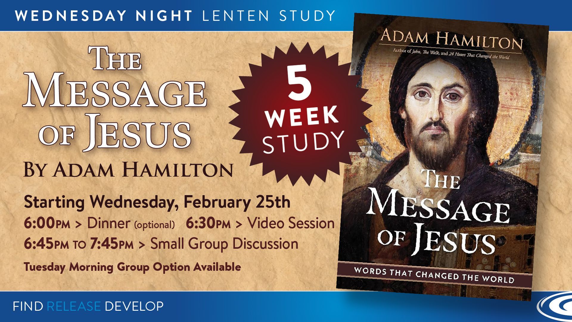 begin on February 25th for 5 weeks, we will meet at church for dinner and small groups.