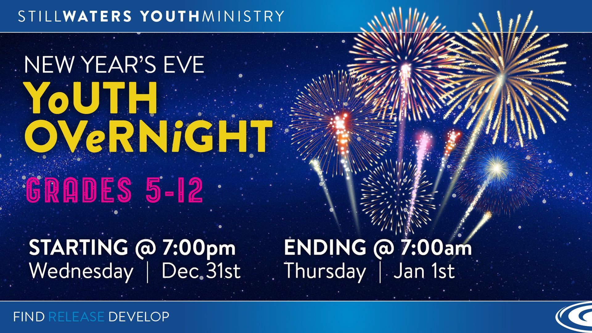 Our youth will have an overnight at church on New Years Eve! What a great and safe way to ring in the new year! Still Waters Youth may invite friends who are 5th grade and older, (siblings may be as young as 4th grade).