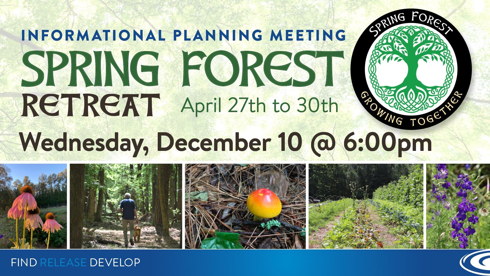 If you are planning on going on our Spring Forest retreat April 28-29 in North Carolina, or if you’ve been considering it, please plan on attending an informational/Planning meeting on Wednesday, December 10 at 6:00 p.m. We will discuss logistics, specifics, airfare options to name a few. Come if you’re already planning/signed up, or if you have questions. If you are planning on going on this trip or have questions and unable to be at this meeting, please let Robin Olson or Nancy Oreshack know so they can fill you in, and so we know you are planning on going! Sign up on the Connection Card or website to let us know you plan to attend this meeting on December 10.