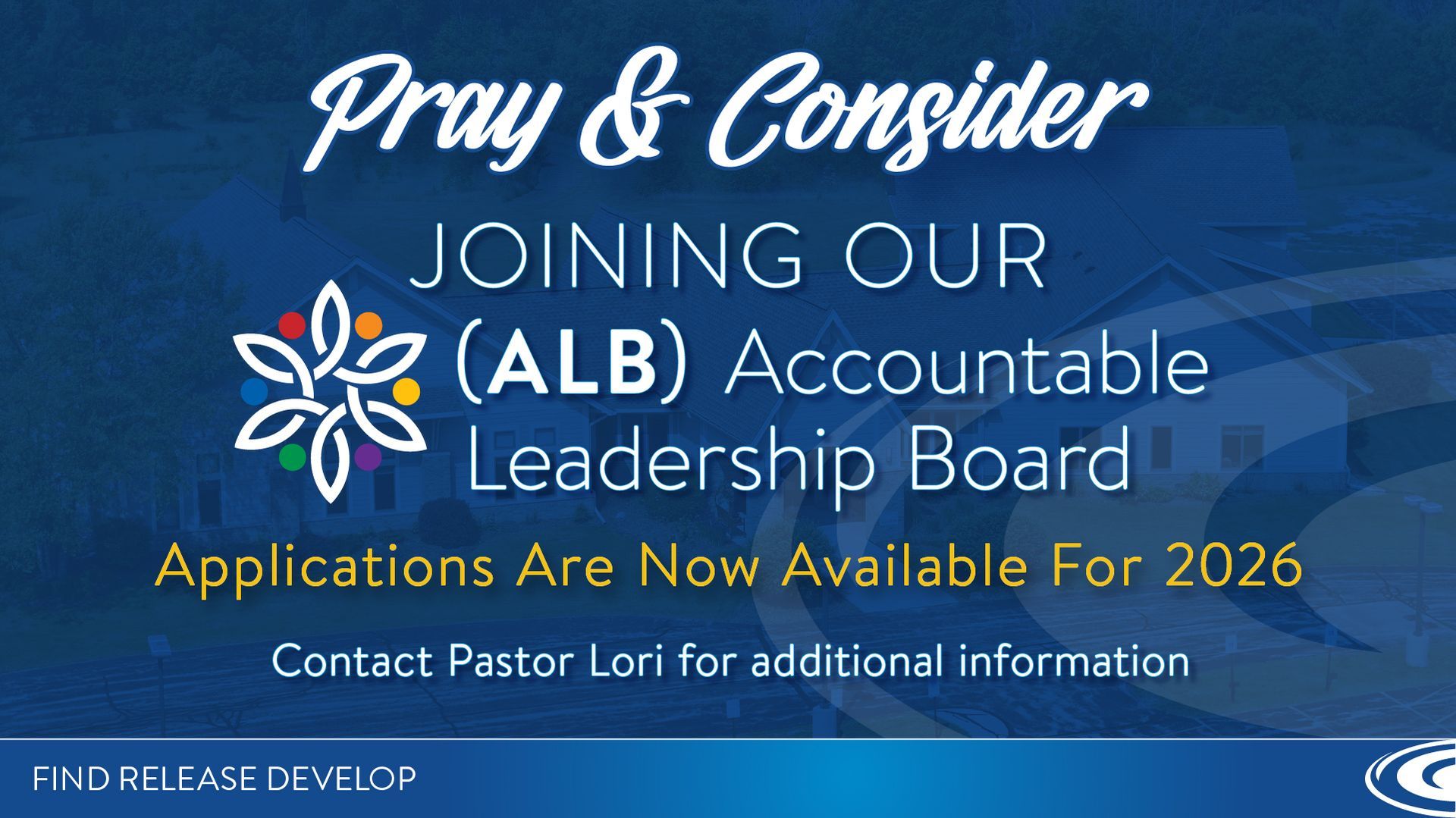 If you might be interested in serving on our Accountable Leadership Board, please contact Pastor Lori who can get you the criteria, covenant, and application, or can answer any questions. Expectations for those on the leadership board include worship weekly, pray daily, serve within and beyond the walls of the church, participate in small groups, and give proportionately, working toward a tithe. We’ll be taking applications now and term will begin with the 2026 year.